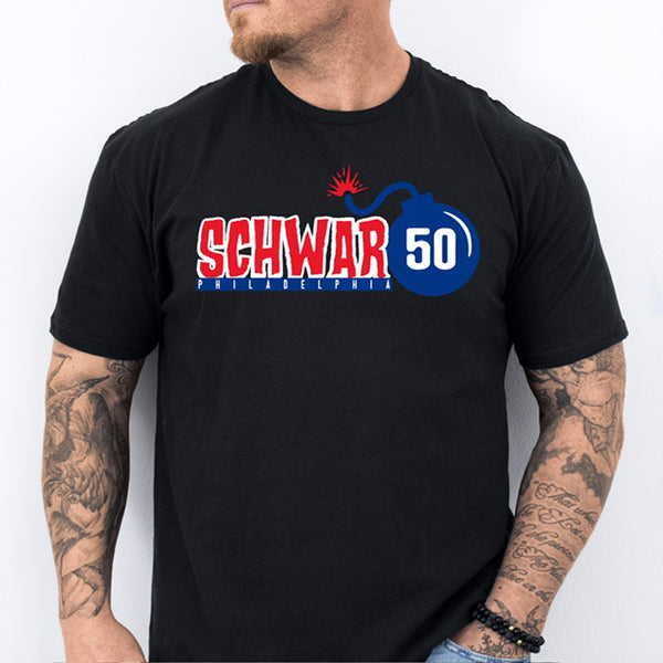 Our SCHWARBOMB #50, Philadelphia Baseball themed t-shirts are very unique and designed ourselves! They make great GAME DAY shirts to cheer on your favorite player or team!