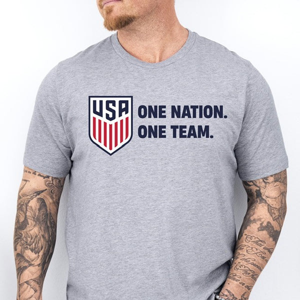 Our ONE NATION, ONE TEAM. Team USA Soccer World Cup themed t-shirts are very unique and designed ourselves! They make great GAME DAY shirts to cheer on your favorite player or team!